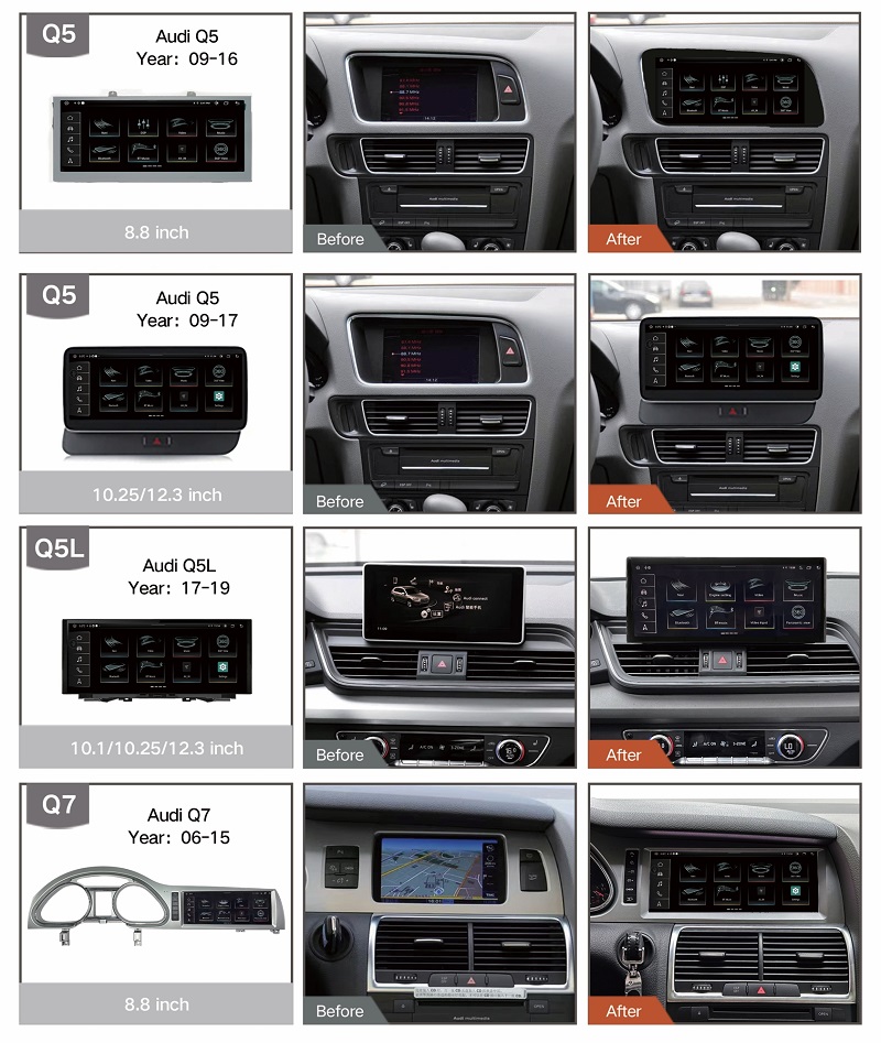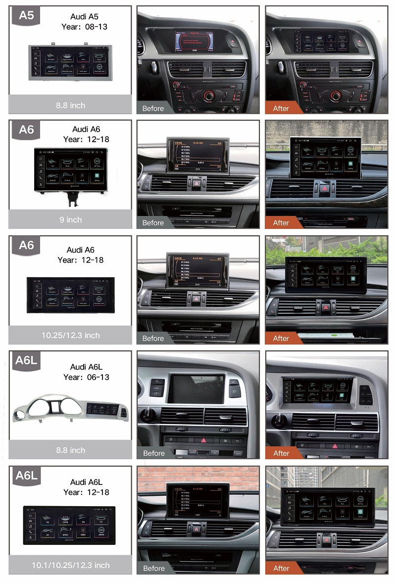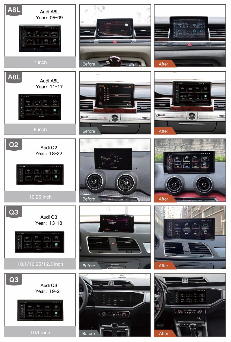 Mời bạn hãy cùng tham khảo qua chiếc màn hình Android cho Audi đến từ thương hiệu màn hình OEM hoặc màn hình Android FLY dành riêng cho xe sang với nhiều tính năng hiện đại. Sản phẩm này có thể lắp đặt dành cho các dòng xe Audi như: Series A, Series Q.