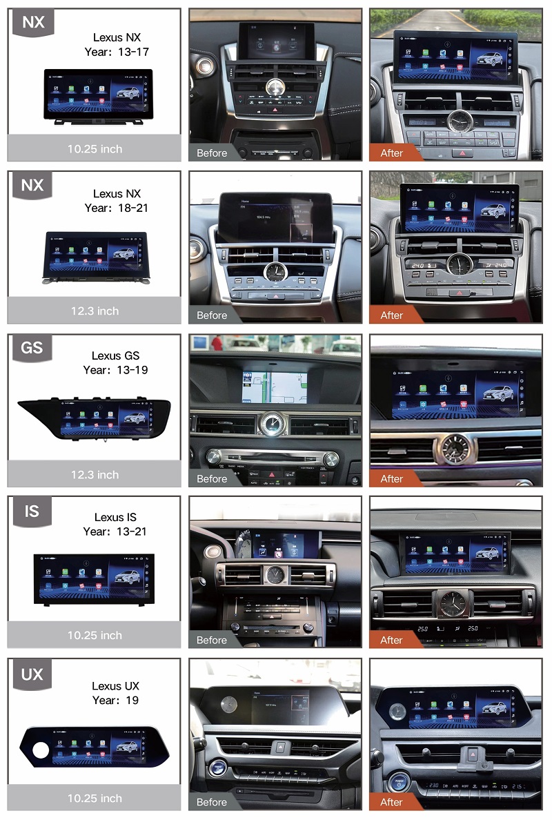 Hiện tại bạn đang sử dụng xe Lexus và đang muốn nâng cấp màn hình Android thì FLY Audio sẽ là một trong những lựa chọn hoàn hảo mà bạn không thể bỏ qua. Sản phẩm có thể nâng cấp được cho các phiên bản của Lexus như: ES, IS, NX, RX, GX, LX, GS, LS...